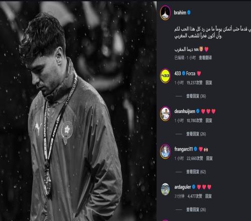 非洲杯决赛罚失关键点球后,卜拉欣-迪亚斯在社交媒体公开道歉,表示承担全部责任。多位皇马队友在其评论区留言...