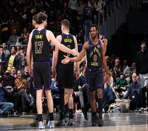 本场比赛中,湖人的双向合同替补内线新星德鲁-蒂米(Drew Timme)的表现还是颇具亮点的。蒂米全场出场17分05秒,投篮2中1,三分线外1中0,得到了4分1篮板3助攻的数据,还有1次失误和2次犯规,正负值也是达到了+17。蒂米在进攻端没有办法得到更多的出手机会,他也没有办法得到更多的分数。不过他还是展现出了一定的得分能力,在对手内线能够制造一定的威胁,而且他在传球和策应方面的能力相当不错,他也是一名球商很高的球员。蒂米虽然不被认为是一名可靠的防守者,但是他在防守端也是非常卖力的,并且也没有出现什么太大的问题。总体来看,蒂米在本场比赛中的表现算得上是比较全面的。只是受制于球权和战术地位,他也确实是没有能力打出更好的表现。