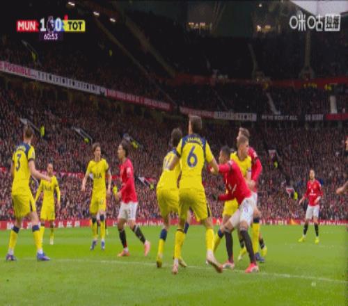 第37分钟,曼联角球配合,姆伯莫推杆破门,曼联1-0领先热刺!