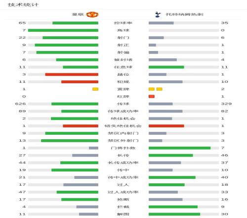 北京时间2月7日英格兰足球顶级联赛第25轮,曼联主场对阵托特纳姆热刺。上半场,罗梅罗因踩踏动作吃到红牌,之后姆伯莫破门。下半场,布鲁诺-费尔南德斯再下一城。最终比分曼联2-0热刺。