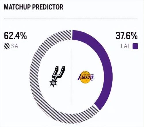赛前,美媒ESPN对本场比赛进行了胜率预测,湖人队胜率仅有37.3% ,马刺胜率则高达62.7% ,差距非常明显。