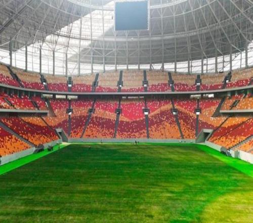 目前,草坪铺设工作已经基本完成,所有根茎全部修剪到位,场地喷施了保护性杀菌剂和叶面肥,铺沙工序也已经完成。