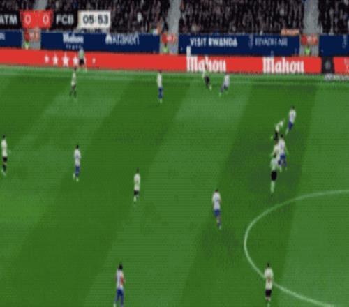 第14分钟,卢克曼接球后,迫使巴萨整体的防守向右路偏移,左路出现漏洞,莫利纳送出助攻,格列兹曼将球推进死角。