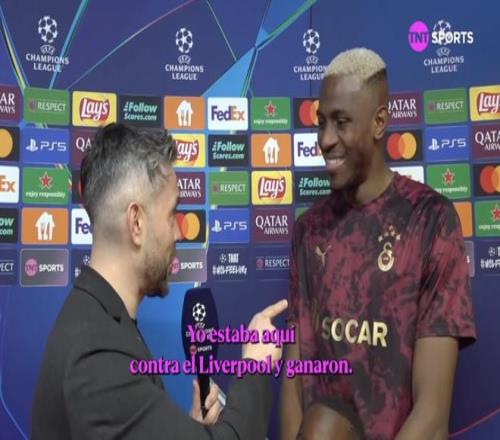 欧冠淘汰赛附加赛首回合,加拉塔萨雷主场5-2战胜尤文图斯,加拉塔萨雷前锋奥斯梅恩赛后接受了TNT体育墨西哥频道的采访。