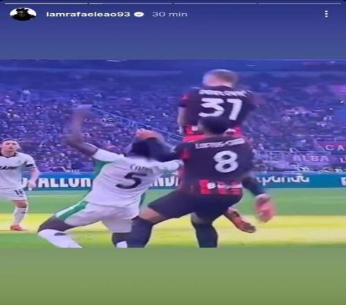 作为对比,莱奥随后晒出了此前对阵萨索洛时米兰进球被吹的照片,当时因为奇克碰萨索洛后卫的后背被吹提前犯规,导致普利西奇进球无效,莱奥以此暗示意甲裁判的双重标准。