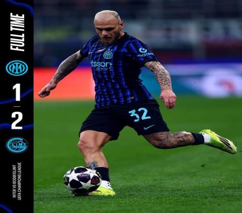 数据统计显示,这是国米近15年来首次在欧冠淘汰赛两回合比赛中被对手双杀出局。上一次还要追溯到2010-11赛季欧冠1/4决赛,当时他们被沙尔克04以总比分7-3淘汰。