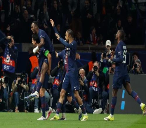 大巴黎球员庆祝成功晋级。新华社发