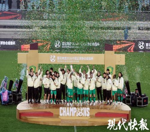 现代快报讯(记者 王卫/文 顾炜 顾闻 刘畅/摄)3月1日下午,中国足协超级杯决赛在南京奥体举行,在这场被诸多球迷称为“开年大戏”的比赛中,北京国安凭借2:0的比分战胜上海海港,捧起了2026年中国职业足球的首座冠军奖杯。超级杯一直代表着中国职业足球的顶级水平,由上赛季中超冠军与足协杯冠军对决。北京国安凭借第31分钟和第84分钟的进球,拿下了这场比赛的胜利,捧起了超级杯冠军奖杯。