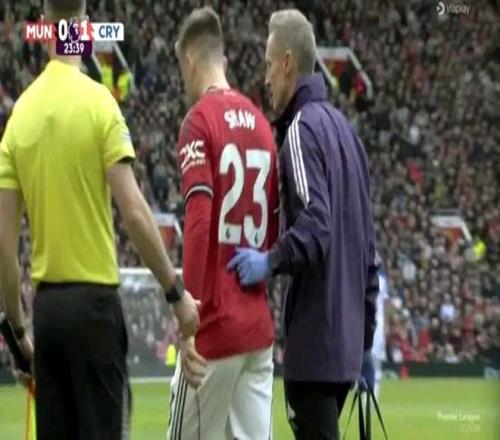 卢克·肖在禁区内与水晶宫右边翼卫丹尼尔·穆尼奥斯对脚,脚面被对方踩了一下。通常这只是硬伤,但30岁的「英格兰卡洛斯」却坐在地上没有起身,队医入场检查后,卢克·肖随着他走下球场,返回了更衣室进行治疗,马兹拉维取代了他的左后卫位置。