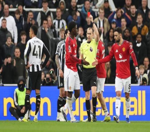 曼联真不想对方领红牌。如果征求曼联的意见,全体红魔想必都会求情:您别给点球,他也别下去!有人说:如果不记名就得给点球。哪里话!还不兴人站不稳啦?少打一人,纽卡没事人似的,转速不减,仍然满场飞奔,追得曼联提着裤子鸡飞狗走。这就不像话了。
