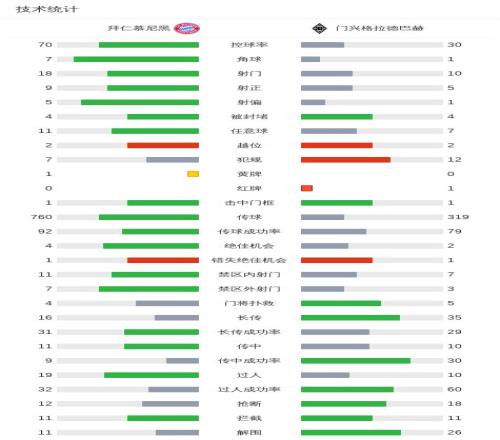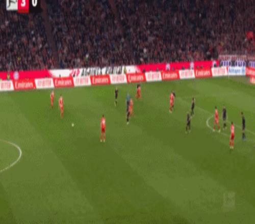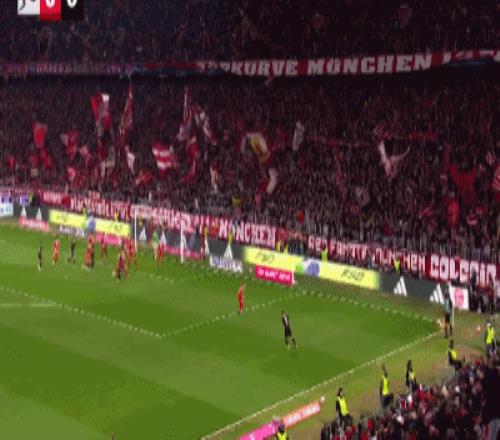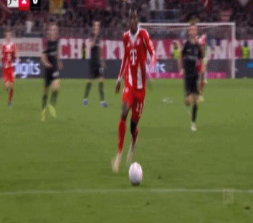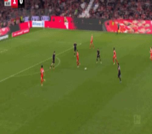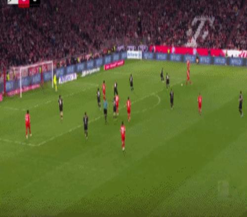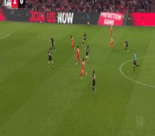 第32分钟,格雷茨卡挑传,迪亚斯凌空抽射破门,拜仁1-0门兴