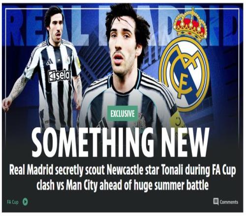 克罗斯退役、莫德里奇离队之后,皇马缺少顶级中场组织者。今年夏天,皇马希望引进中场核心。3月8日,《太阳报》独家爆料,皇马派球探现场考察纽卡中场托纳利,25岁的意大利名将身价为7500万欧元(德转估值)。