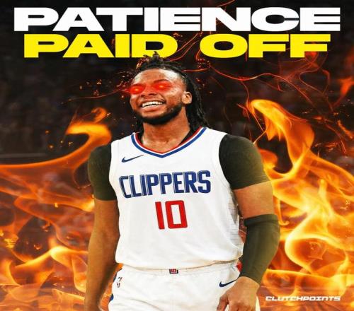 巧合的是,快船在开局6胜21负之后,过去37场比赛取得了26胜11负,同期战绩恰好与骑士相同,两队并列联盟第三(前二是凯尔特人马刺,并列27胜10负),所以别看快船现在才西部第八,他们是真的有争冠可能性。