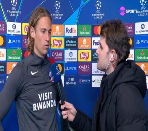 欧冠1/8决赛首回合,马竞主场5-2战胜热刺,马科斯-略伦特赛后接受了TNT体育墨西哥频道的采访。