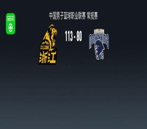 第四节广厦赵岩昊拿下8分,同曦张新宇拿下5分,最终广厦113-80战胜同曦