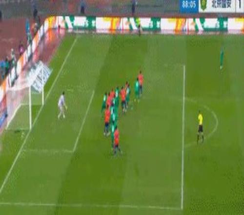 第87分钟,李源一主罚任意球斜传,克雷桑头球冲顶破门,2比1!