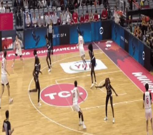 南苏丹队的攻防转换速度极快,球员的柔韧性也很好。而中国队则是稳健的打战术:46-36,中国女篮半场领先对手10分。