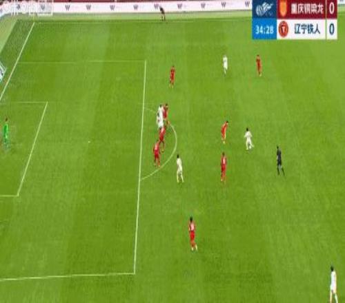 第27分钟,重庆铜梁龙传中制造辽宁铁人禁区内险情,门将韩镕泽解围击中自家立柱出了底线,辽宁铁人逃过一劫。