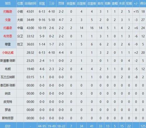 掘金那边“湖人克星”穆雷严重失准投篮14中1只得到5分6板6助,约基奇24分16板14助大号三双外加5断难救主,屡次贡献英雄球的戈登27分5板2助功亏一篑。