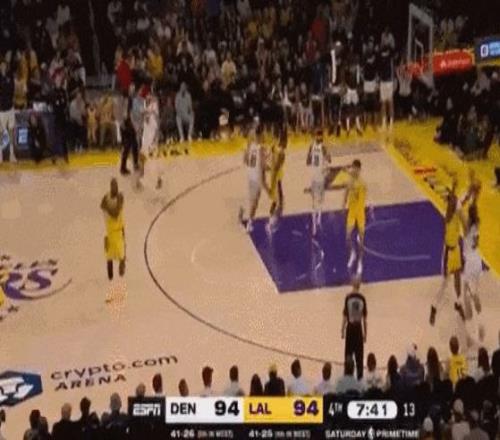 西部强强对话,两队均全主力出战,上半场湖人61-50掘金。