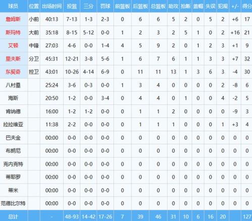 最后,致敬41岁的詹姆斯,史诗级的鱼跃救球,用斗志感染了全队。