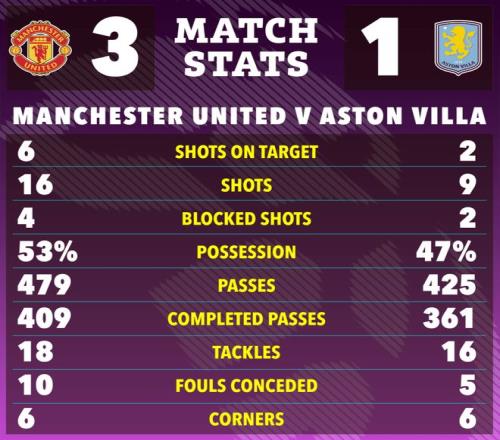 曼联坐镇老特拉福德主场3-1击败阿斯顿维拉,领先对手3分巩固了英超第三的位置。上半场的场面踢得非常沉闷,然而红魔后发制人,下半场由卡塞米罗、库尼亚和谢什科各入一球。队长布鲁诺·费尔南德斯完成两次助攻,以16次助攻超越贝克汉姆保持的俱乐部单赛季助攻纪录。