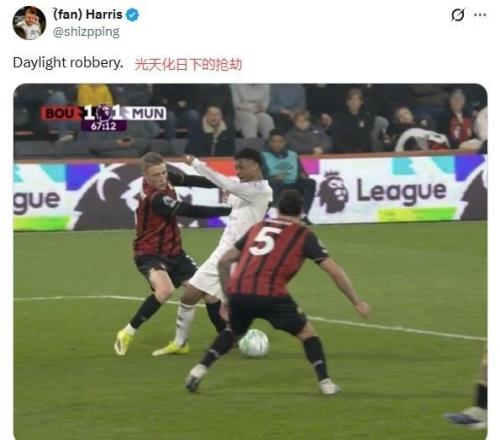 “同样的犯规,一个是红牌+点球,一个啥都没有!”:“光天化日下,曼联被抢劫!”:“应该对主裁处罚,甚至禁赛!”