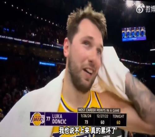3月20日消息,3月20日结束的NBA常规赛中,湖人背靠背以134-126击败热火,豪取8连胜。本场比赛,东契奇爆砍60分7篮板,赛后他表示,自己累坏了,但是这场胜利展现了湖人的强大韧性。