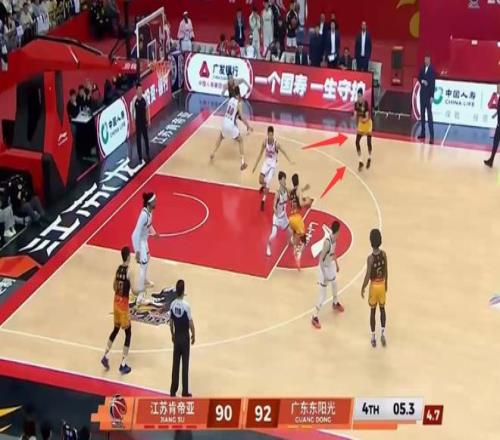 而正是因为有徐杰、杜润旺、萨林杰这样的有明显防守短板的球员在(如身高矮,脚步不够快),广东队就必须在防守策略上作出让步,关键时刻无限换防或者盯人防守会被抓错位,只能采取联防,去制造对手持球人失误,或者赌对手空位三分不进。