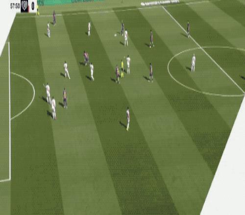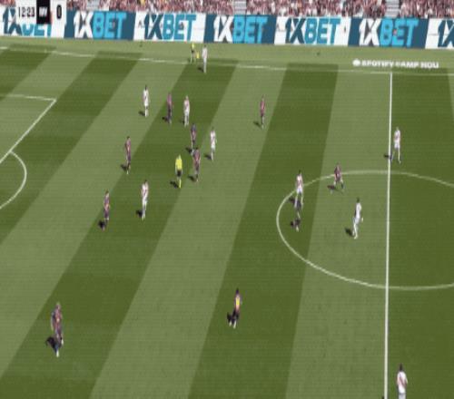 第68分钟,巴萨利用定位球连续攻门,奥尔莫不看人的情况下似传似射,两队所有球员都目送皮球出了底线。