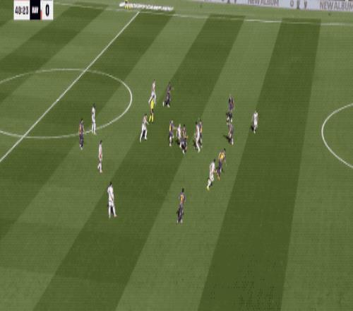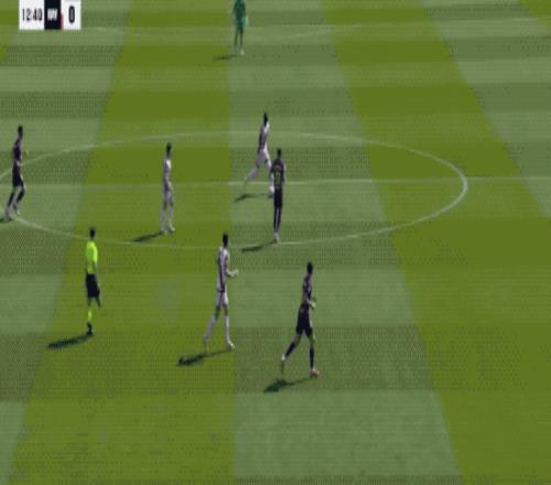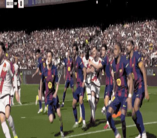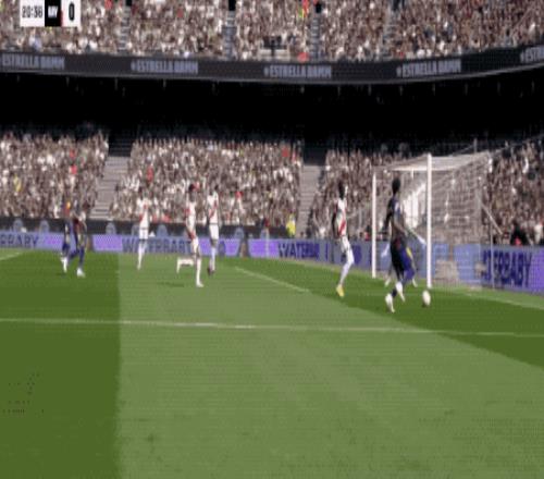第57分钟,巴萨快发前场任意球,费兰·托雷斯第一时间将球扫到门前,球速相当快,拉菲尼亚飞铲都没能碰到皮球。