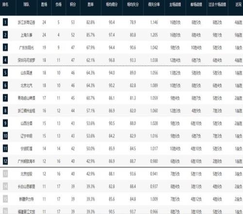 青岛、浙江、山西、辽宁这四支球队的综合实力不相上下,胜场差距也很小,排名第七的青岛男篮与第十的辽宁男篮只有2个胜场的差距,在最后冲刺阶段,每轮比赛打完,积分榜的排名都会被重新打乱。而广州男篮则是成为了季后赛守门员,上场击败宁波男篮之后,球队战绩来到12胜16负,与身后的北控、吉林、新疆、福建四支球队只有1个胜场的差距,稍有不慎也是很有可能跌出12强。