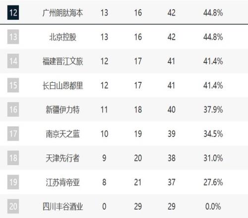 第12的竞争就非常激烈了。广州这轮取胜之后,现在排在第12,不过北控这轮艰难击败浙江,他们和广州的胜场是一样的。福建最近的状态非常好,吉林第三阶段3胜3负,这两支球队落后广州也就1个胜场。