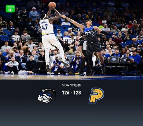 第四节魔术班凯罗拿下11分,步行者西亚卡姆拿下10分,最终魔术126-128不敌步行者