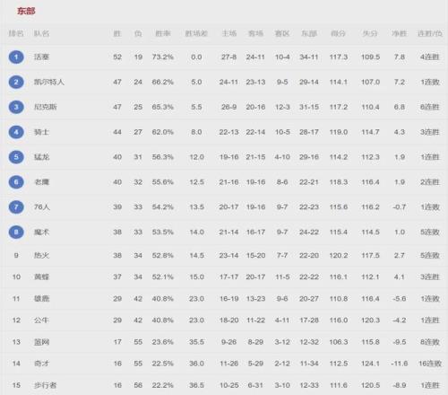 截至今天赛前,76人39胜33负排名东部第七,领先第八的魔术0.5个胜场,落后第六的老鹰1个胜场。乔治说:“我们目前的位置依然不错!我会把最后这10场常规赛当成季后赛来打,我们要带着必须赢的心态去拼,稳住一个好排名。”