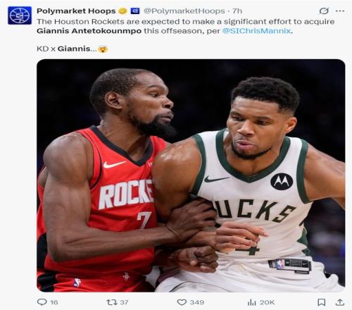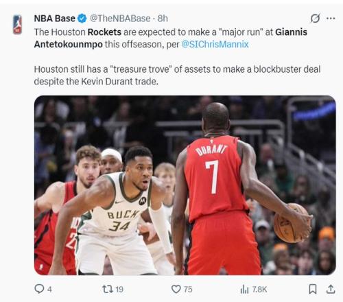 根据克里斯-曼尼克斯的报道,火箭队内部也相信他们手中的筹码可以打动雄鹿,就算刚刚完成KD的交易他们也还手握丰厚的筹码。