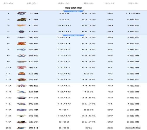 CBA积分榜一夜大变:上海11连胜,辽宁遭爆冷,广东送四川30连败