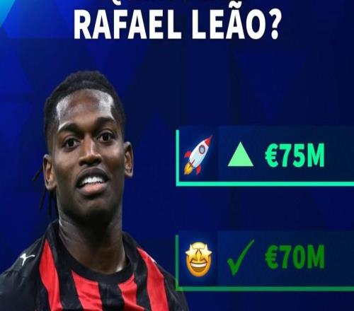 北京时间3月17日,德转预热了AC米兰前锋拉斐尔-莱奥的身价更新,他们给出了四个选项,最高涨至7500万欧元,最低跌至...