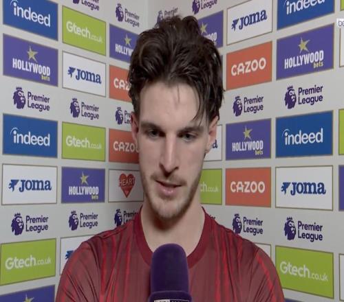 英超第26轮,阿森纳客场1-1战平布伦特福德,赛后,阿森纳中场赖斯接受了拜因体育的采访。德克兰,比赛最后时刻你的...