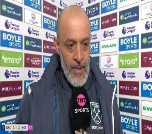 英超第30轮,西汉姆联主场1-1战平曼城,西汉姆联主帅努诺赛后接受了TNT体育的采访。努诺,今晚这场比赛对你们来说...