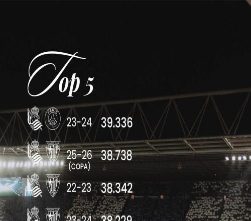 皇社主场上座人数前五中四场都是对阵毕包,但第一是对阵巴黎