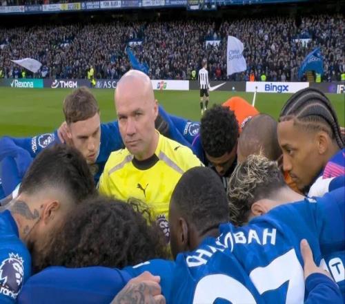 据《太阳报》报道,英超切尔西对阵纽卡斯尔联赛前出现有趣一幕,主裁判保罗-蒂尔尼意外站在切尔西赛前围圈中央,...