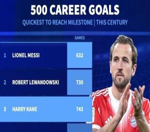 21世纪500球里程碑最快榜:凯恩第三,梅西莱万一二,C罗第四