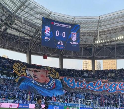 对阵大连英博赛前,申花主场打出巨型TIFO致敬于汉超