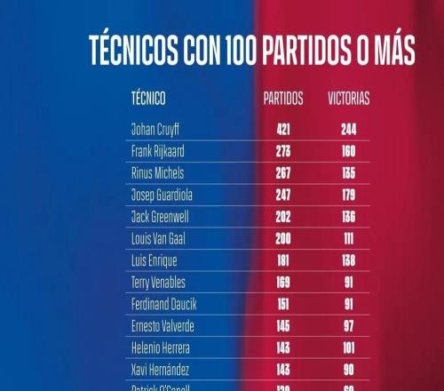 弗里克达成执教巴萨百场里程碑,成为队史第14人