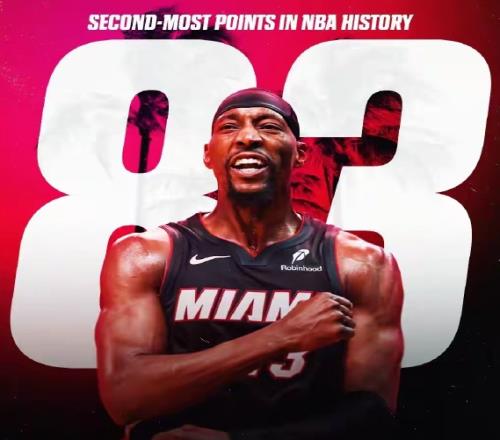 今日NBA迎来历史性时刻,热火球星阿德巴约狂砍83分,打破了科比保持了20年的NBA历史第二高得分纪录,仅次于张伯伦...