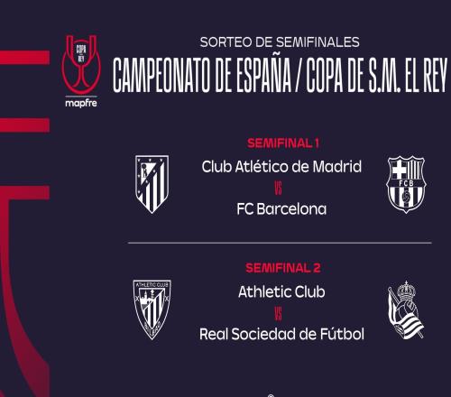 国王杯半决赛对阵出炉!巴萨vs马竞、毕巴vs皇社,两回合决胜